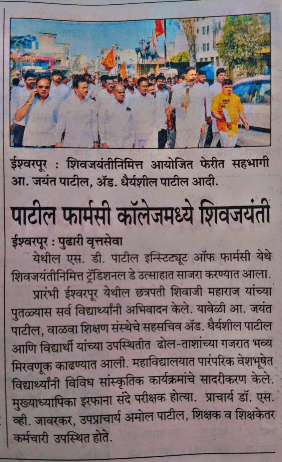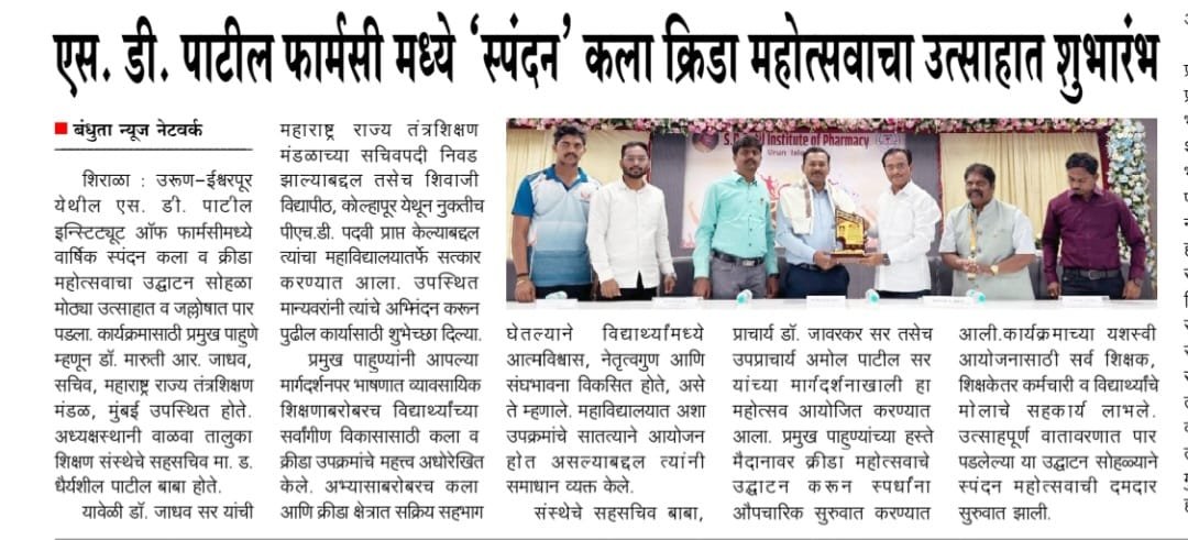 S. D. Patil College of Pharmacy, Islampur has been started with great foresight.The College has made pioneering efforts in the providing the comprehensive education & training in Pharma Science to the students coming particularly from the rural areas. S.D.Patil Institute of Pharmacy (Diploma), Urun-Islampur is recognized by govt. of Maharashtra affiliated to Maharashtra state Board of tech Education (MSBTE) Mumbai. And approved by All India council for technical Education (AICTE) & Pharmacy Council of India New Delhi.